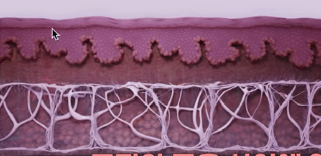 우리의 피부는 표피층, 피하지방, 근육층으로 되어있는데 이 층들이 연결이 약해지면서 표피증에 주름이 잡히고 탄력이 떨어지게 됩니다.