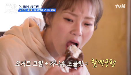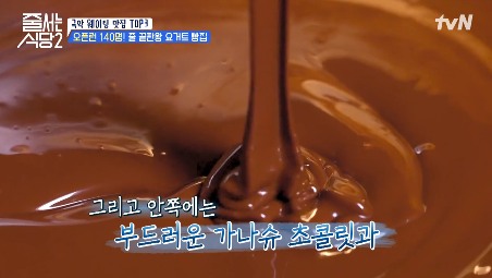 겉은 쫄깃하면서 뽀송뽀송, 진하고 부드러운 가나슈 초콜릿이 듬뿍, 속은 상큼한 요거트 크림이 한가득